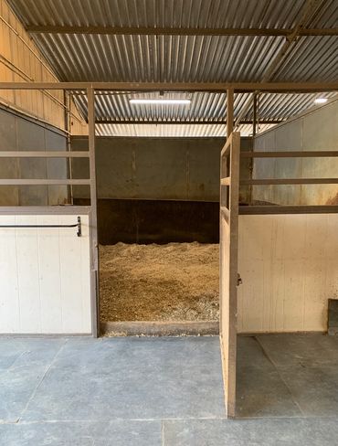 20 stall barn with 12x12 stalls that have fully matted walls, lots of shavings, large automatic waterers, cleaned twice daily. Board includes 5 flakes of hay daily.